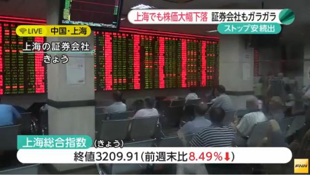 その終値、上海総合指数は、先週末に比べて-8.49%。