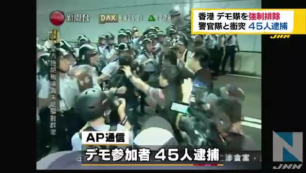 両手を挙げて無抵抗の姿勢を示す学生に、催涙スプレーを噴射する警官。悲鳴を上げて逃げ惑うデモ参加者らは、警官隊の手で続々と連行された。15日未明、香港島中心部アドミラリティ(金鐘)の行政長官弁公室(官邸)前の幹線道路で、香港警察は衆人環視の中、容赦なく約千人の強制排除に踏み切った。 強制排除という名の暴力もあったようなので、これはこれで問題になると思います。