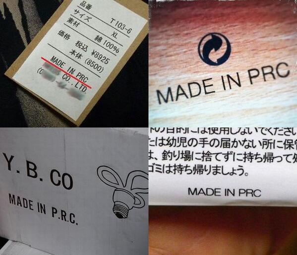 日本メディアの指摘によると、日本の消費者の間から最近、中国製商品の原産国表示が「MADEINCHINA」から、中華人民共和国(People′sRepublicofChina)英文表記の略である「PRC」を使った「MADEINPRC」にすり替えられたとの不満が上がっている。