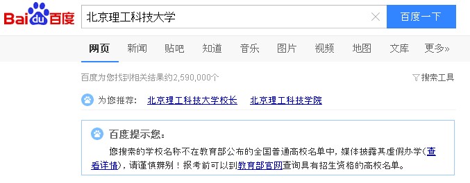 ただ、こうした状況はさすがによくない(共産党内に騙された人がいたのかも)ので、百度でニセモノの大学名を調べると、